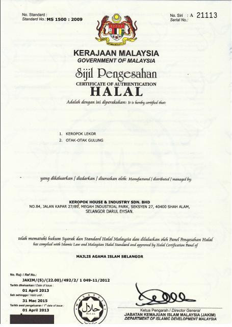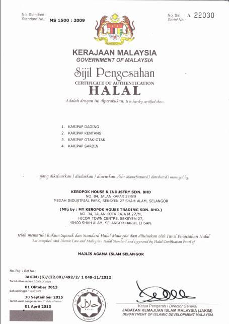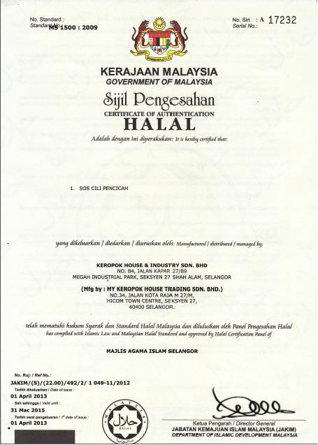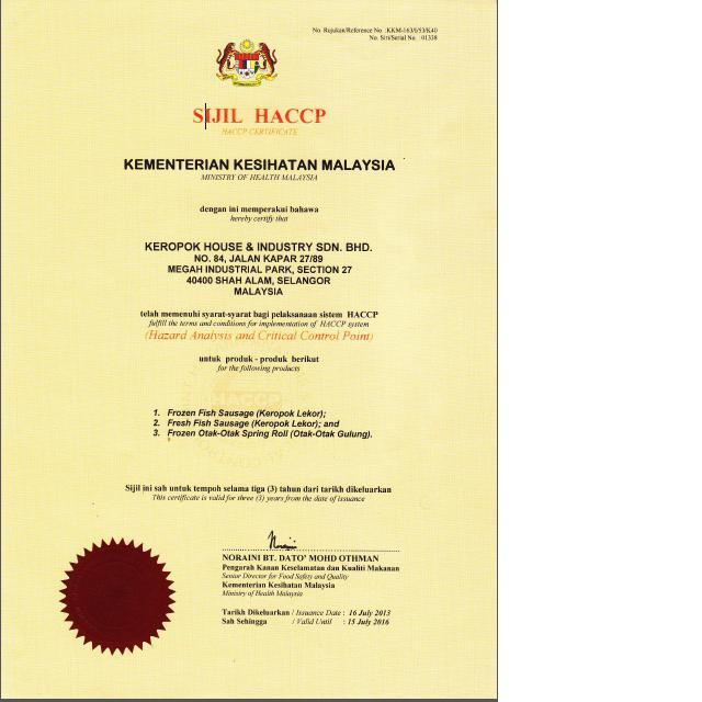 We have succesfully complied to food processing rules and regulation of Malaysia and therefore been grant a few certification for our production line.